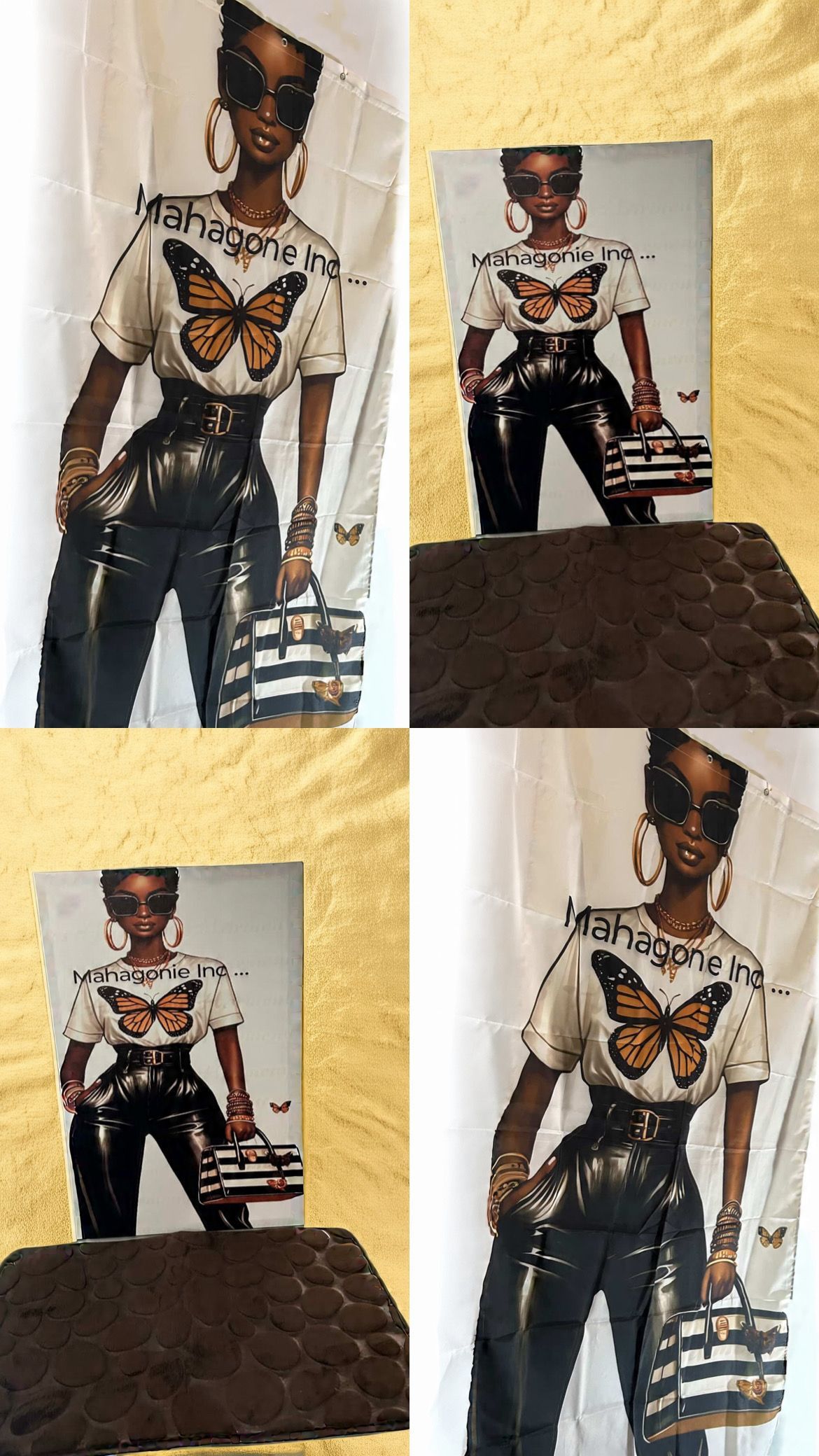Shower curtain and bath mat is safe to machine wash, tumble dry on mid heat.