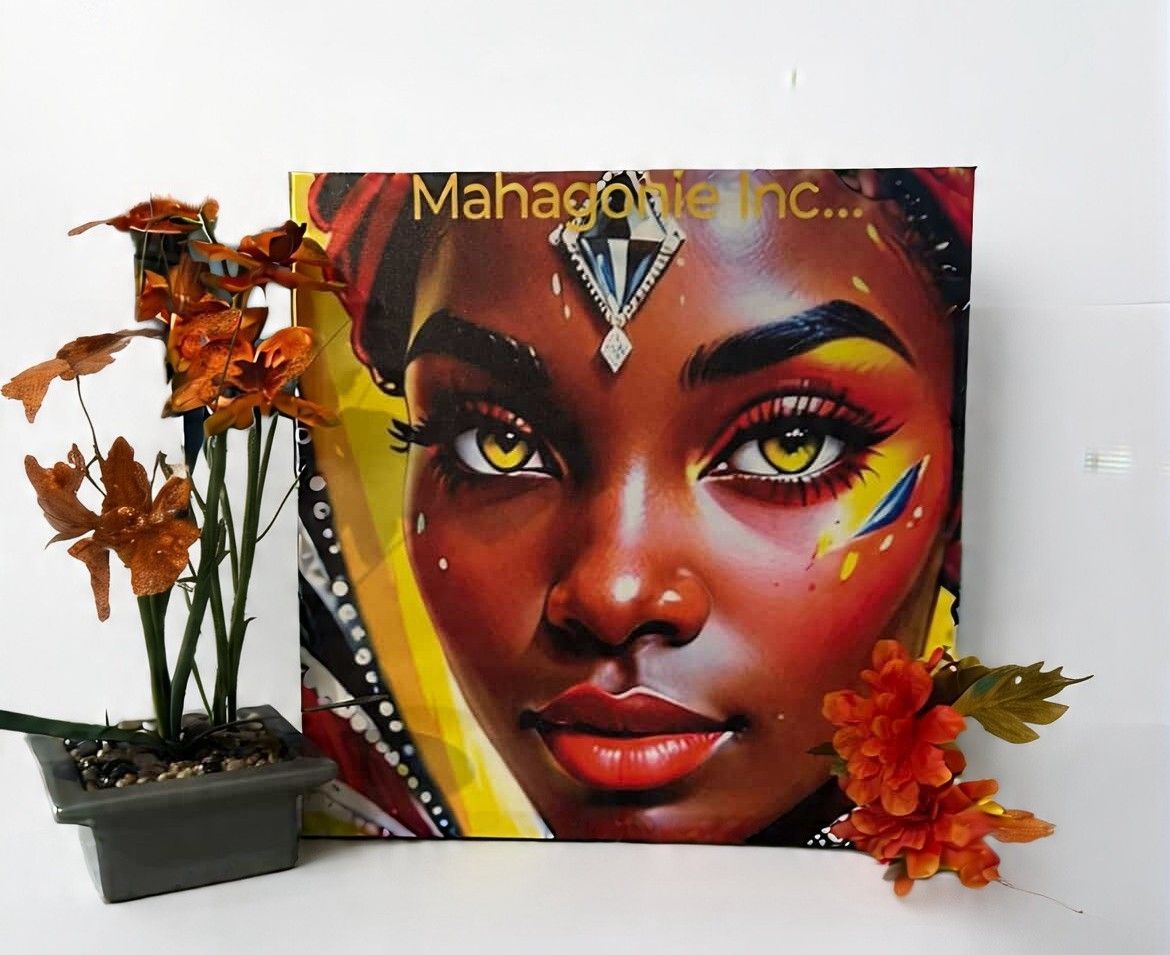 Woman in the wilderness vibes with bold red and lemon-yellow colors.